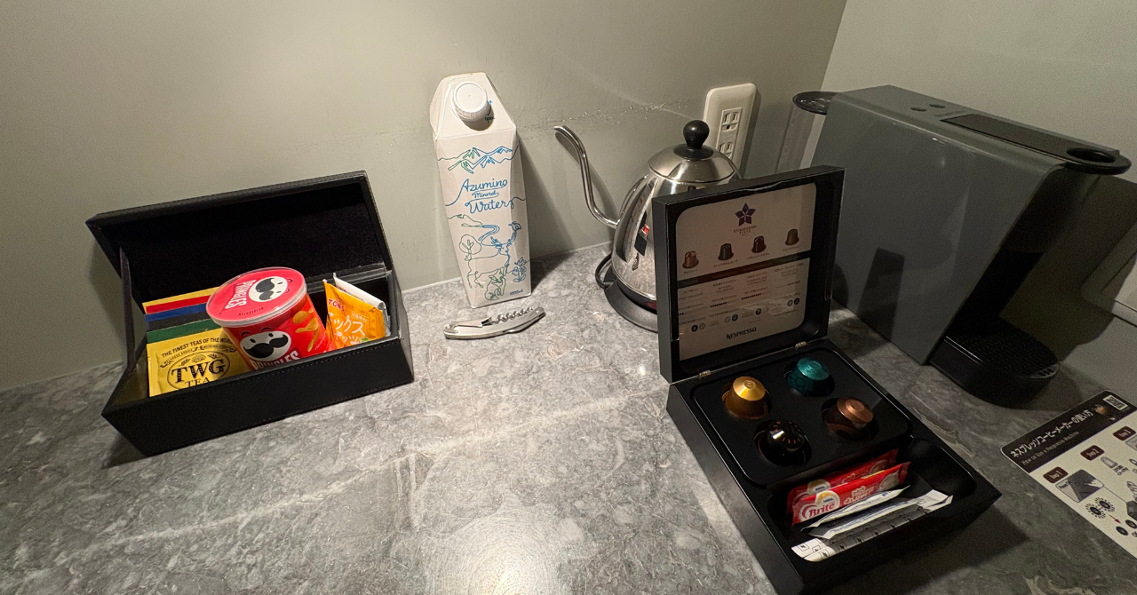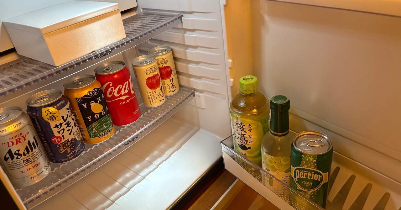 そして、旧軽井沢KIKYOで一番驚いた点が冷蔵庫の飲み物や備え付けのスナック菓子が全て無料ということです。