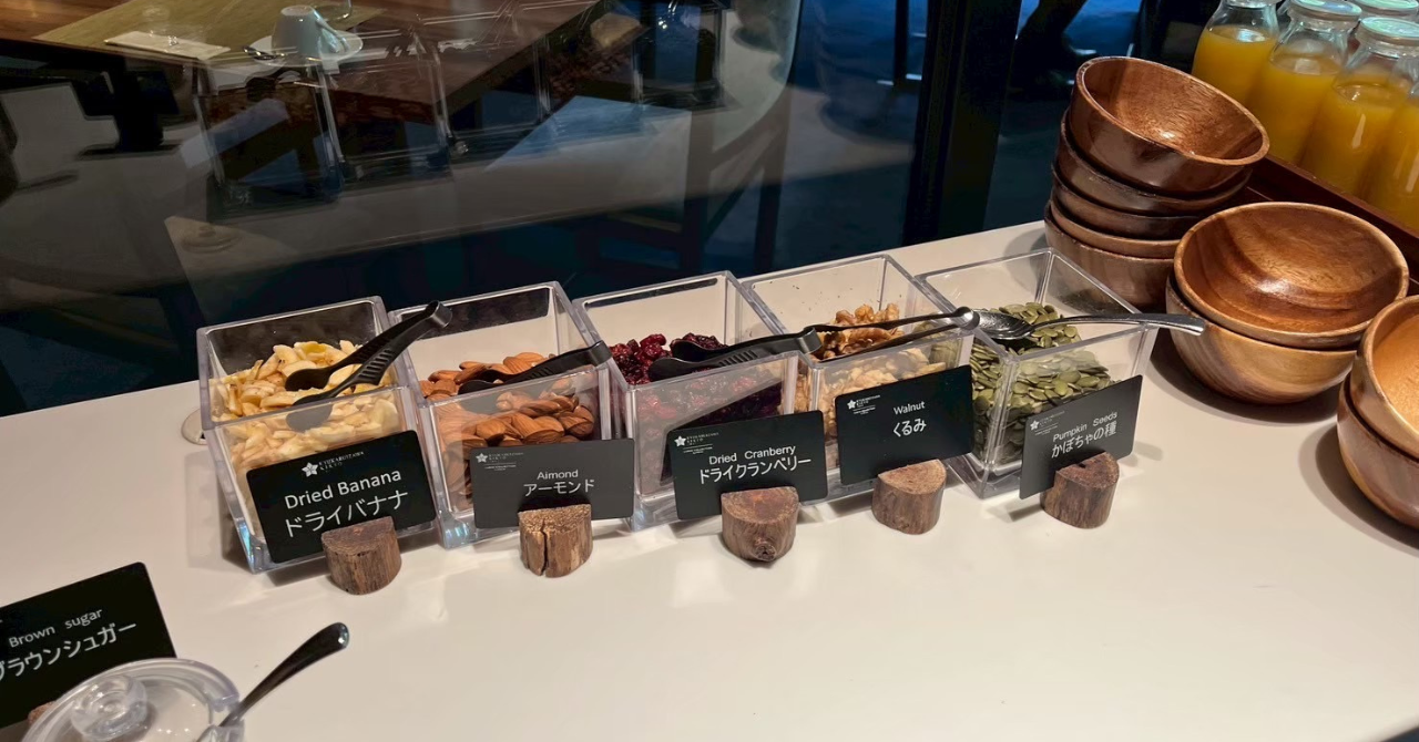 旧軽井沢KIKYOの朝食はメインの料理が選べて、サラダやパン・いくつかの温かい料理がブッフェ形式で自由に食べられるハーフビュッフェスタイルでした。選べるメインの料理には、私たちが選んだ和朝食や台湾風豆乳スープのほかには卵料理やガレットなどが選択可能でした。
